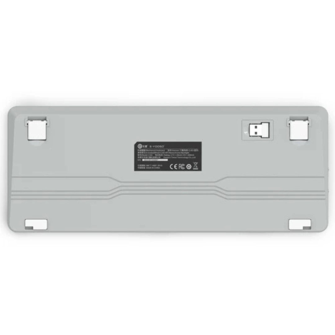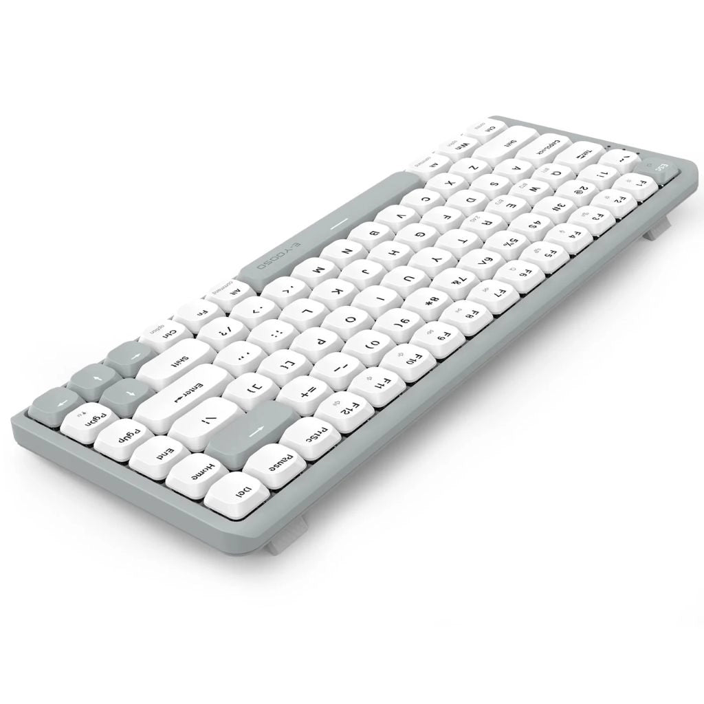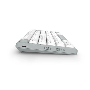 The keyboard features a clean white and grey finish with durable construction, combining modern aesthetics with long-lasting reliability.