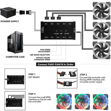 - Controller Connector: 10*6PIN(for fan),1*4PIN(for DC power supply)